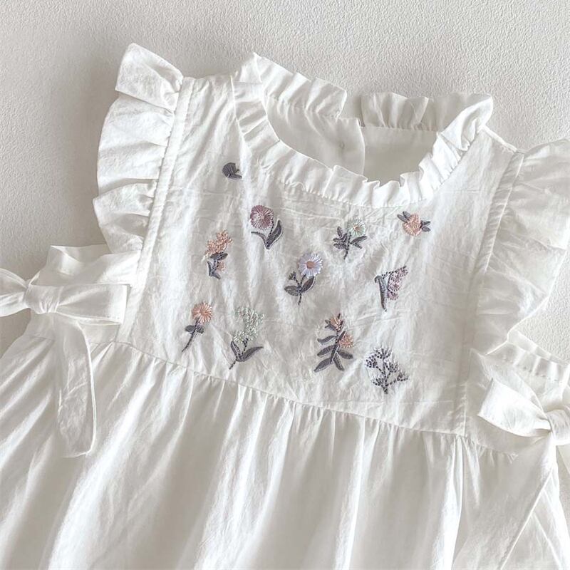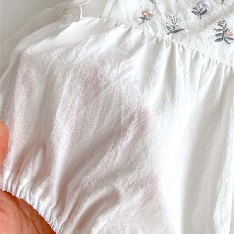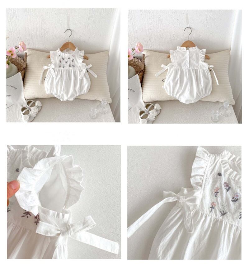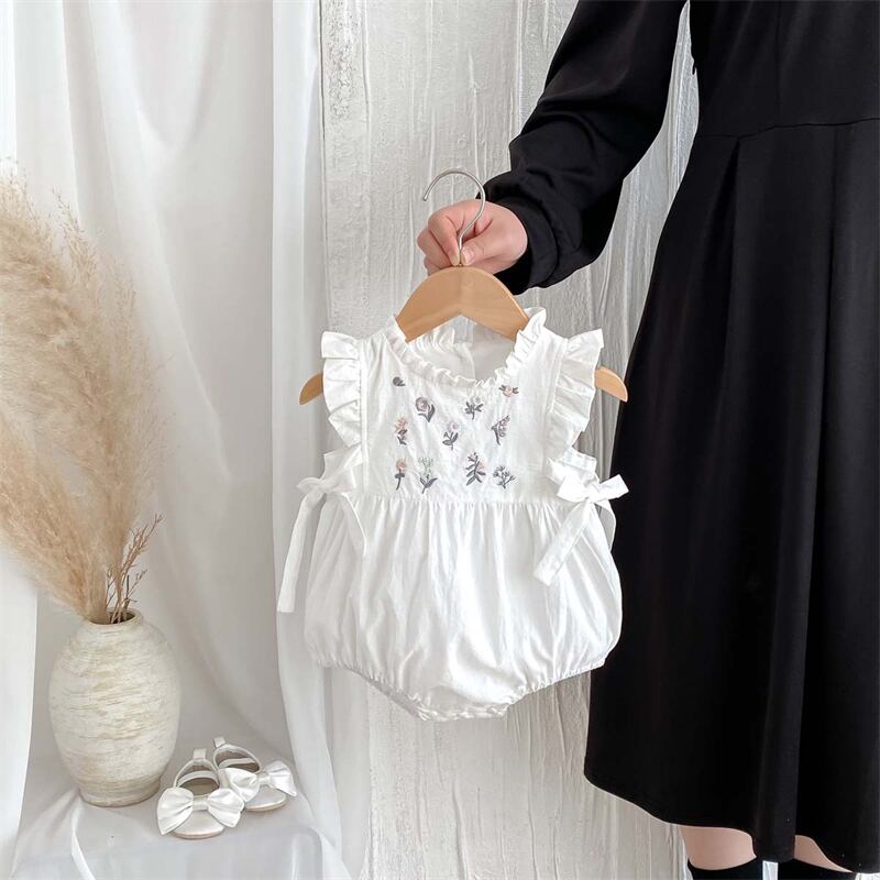 ベビー服 刺繍花柄 立ち襟 ロンパース サイドリボン 女の子 おしゃれ 可愛い 子供服