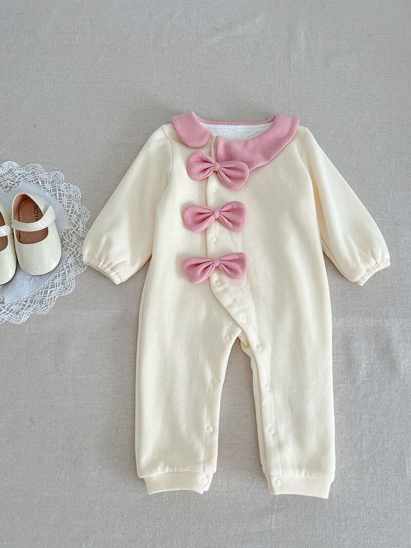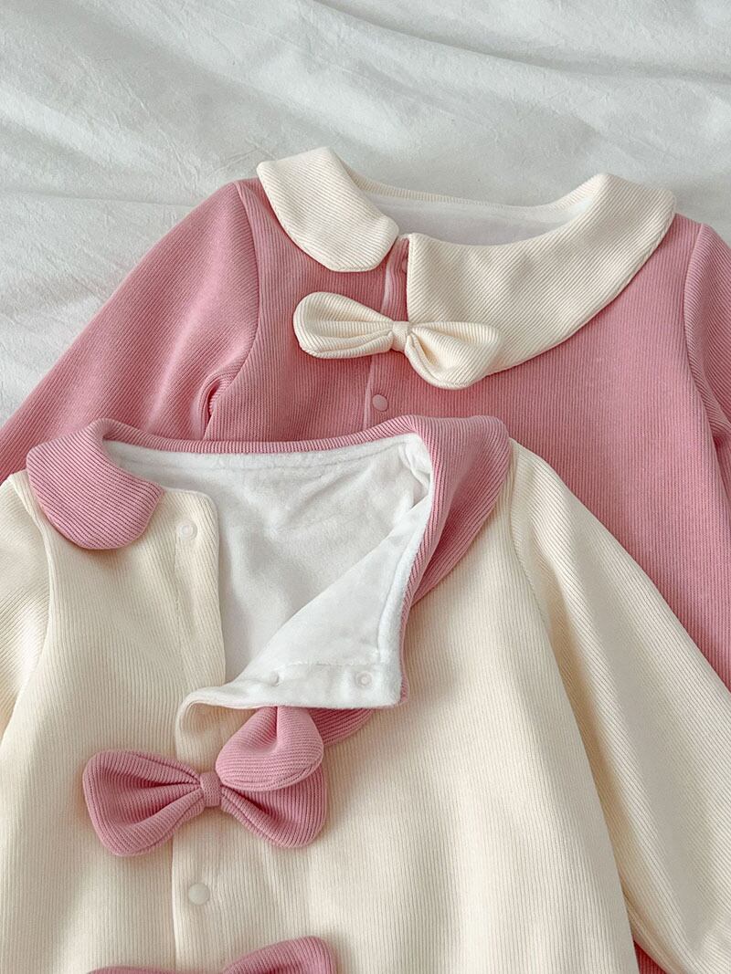 秋冬新作 ガールズ 0-3歳ベビー 連体服 リボン 裏ボア裏起毛 ロンパース カバーオール 66-100